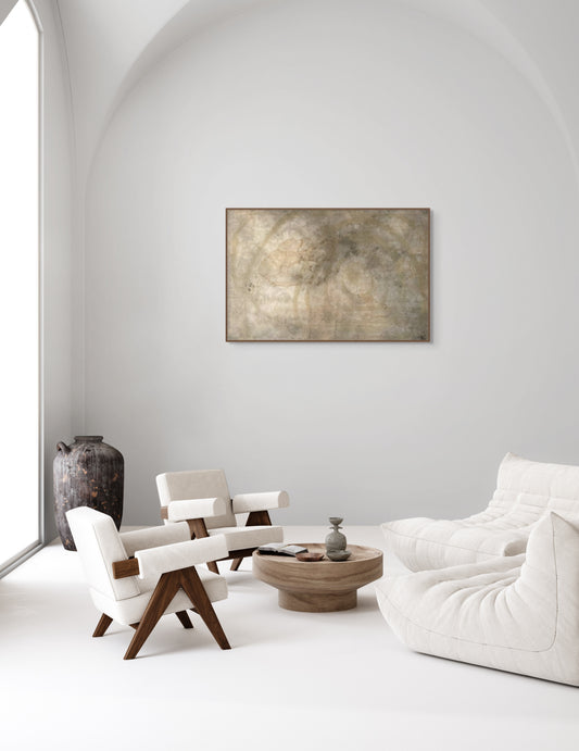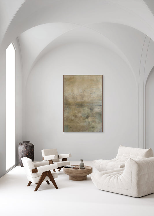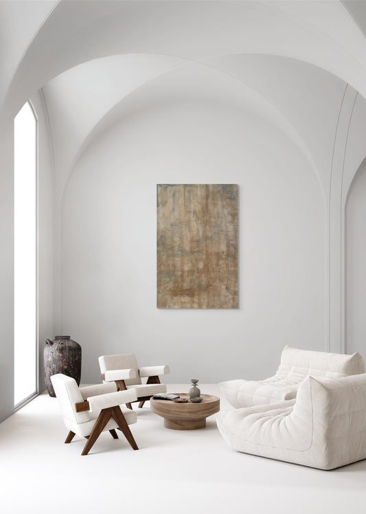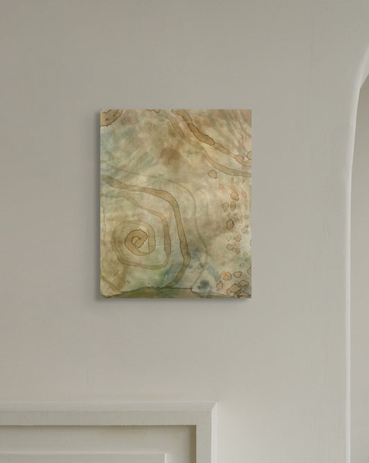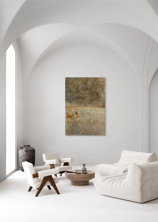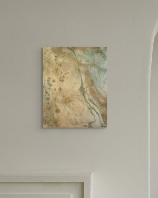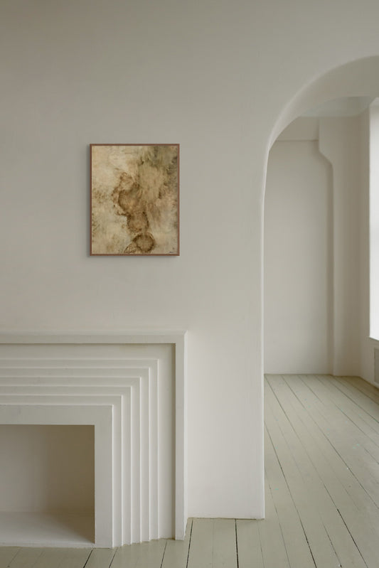 Since sharing her work publicly in 2020, Anna-May’s artistic practice has evolved organically, shifting from a focus on still life to more abstract and expressionistic forms. She draws inspiration from the physical and psychological landscapes that have shaped her journey, spirituality, and identity. Blending traditional and unconventional materials, she creates rich, textural layers, often working with soft, muted palettes and delicate fabrics that evoke a sense of introspection, memory, and personal growth.