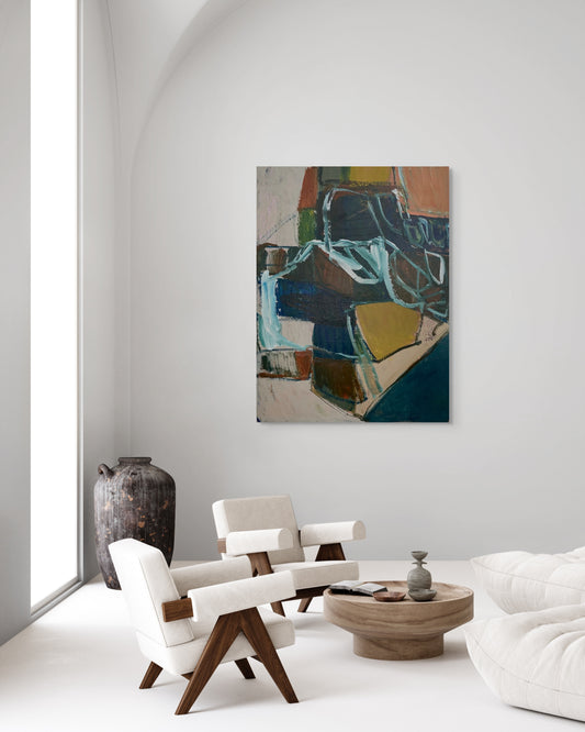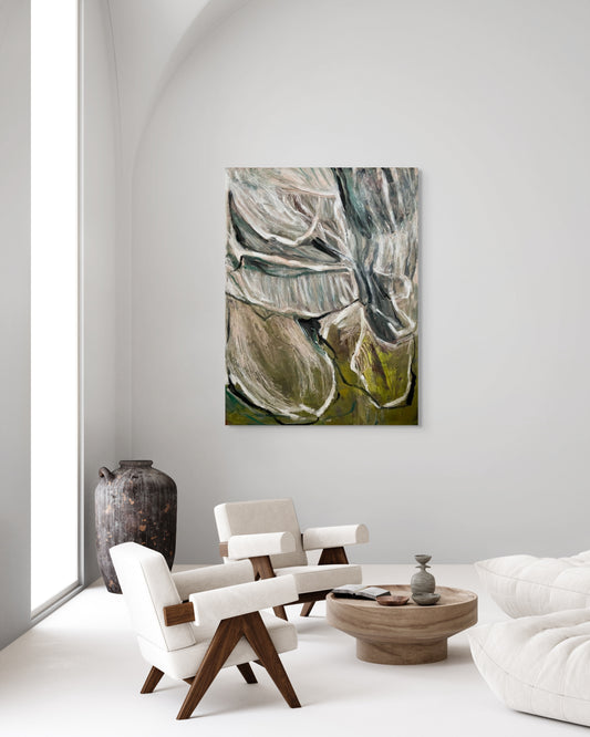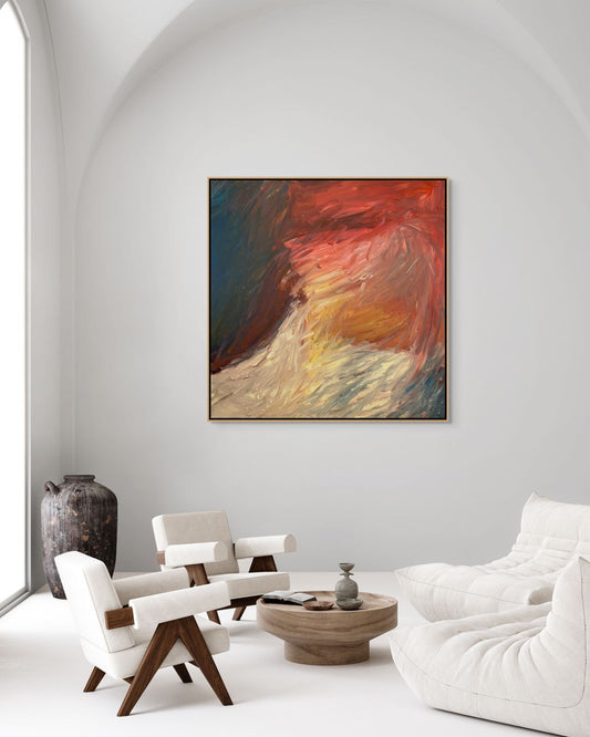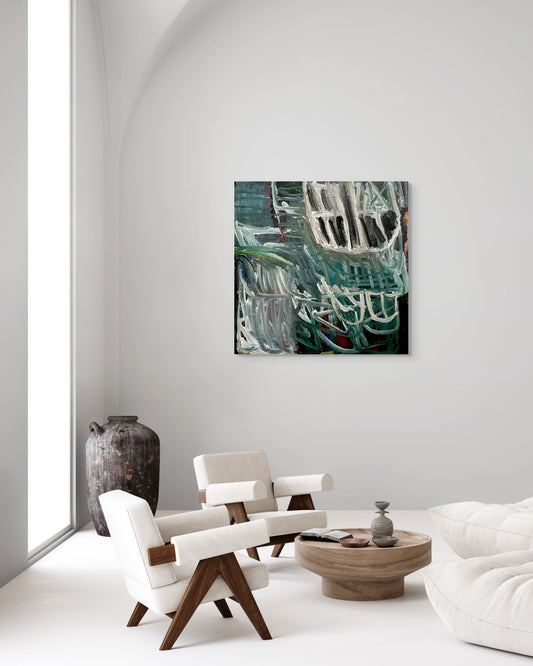 Developed by Newcastle living, his work is shaped by coastal textures, soundscapes, and lived memory. Each piece is a balance between spontaneity and control, an invitation into a more meditative space of imagination and dreaming. After years of private practice, he is now reconnecting with the public side of art, returning to exhibition, collaboration, and creative dialogue through abstract painting.