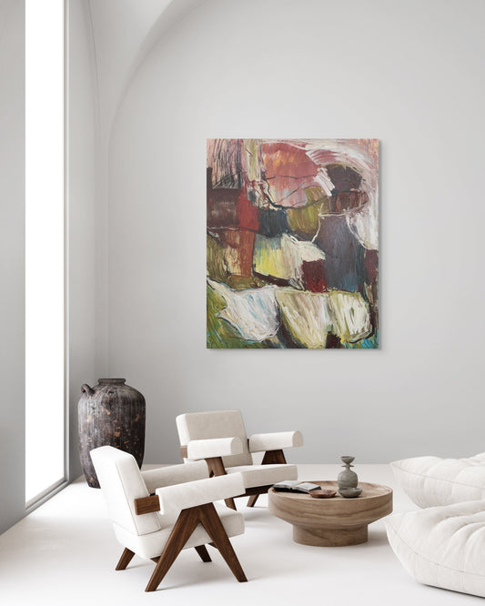 Working primarily in acrylics and mixed media, his paintings are process-driven explorations of memory, energy, and internal landscape. Influenced by sound, atmosphere, and the imperfections of lived experience, his work blends instinctive gesture with layered texture to create compositions that feel both raw and resolved.