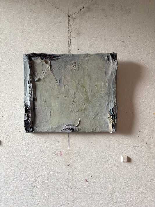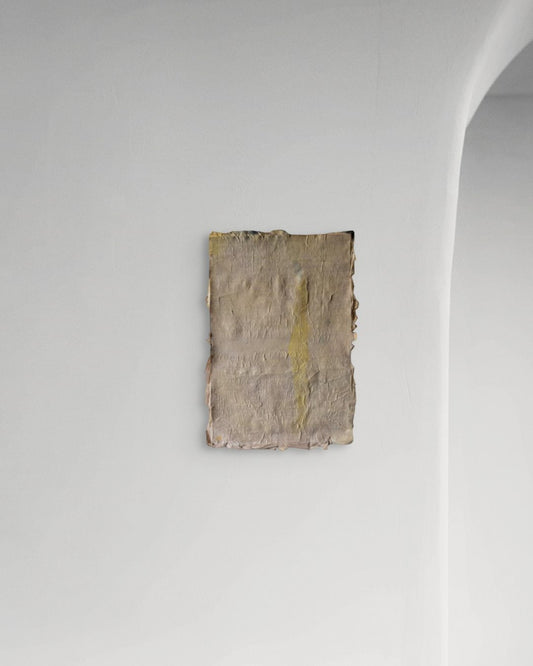 With a background in Fine Art, Industrial and Interior Design, Tang’s practice reveals an ongoing interplay between art, craft, and design. Working primarily with acrylics, rice and tissue paper, she develops layered compositions that explore texture and materiality, transforming the surrounding space into a place of tranquility. The raw imperfections in her work encourage close observation, revealing subtle details that echo the silence and stillness found in nature.