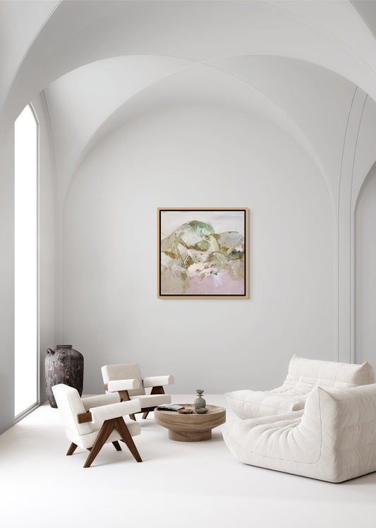 Infused with a soft aesthetic, Ree's paintings evoke a sense of serenity and beauty, inviting viewers into a place of tranquillity and introspection. While her repertoire predominantly comprises gentle abstract pieces, an evolution towards more adventurous experimentation with bolder colours, contrast, and defined contours has been a welcoming one. It’s here she uncovers a harmonious balance of delicacy and fragility with an underlying strength.