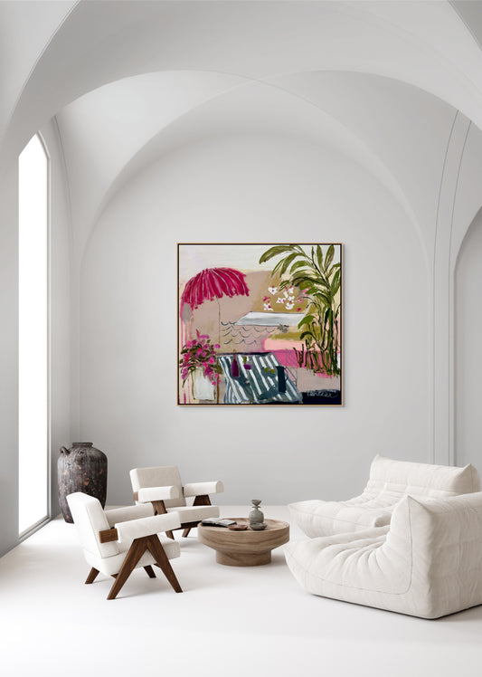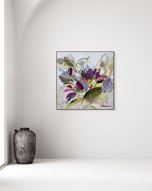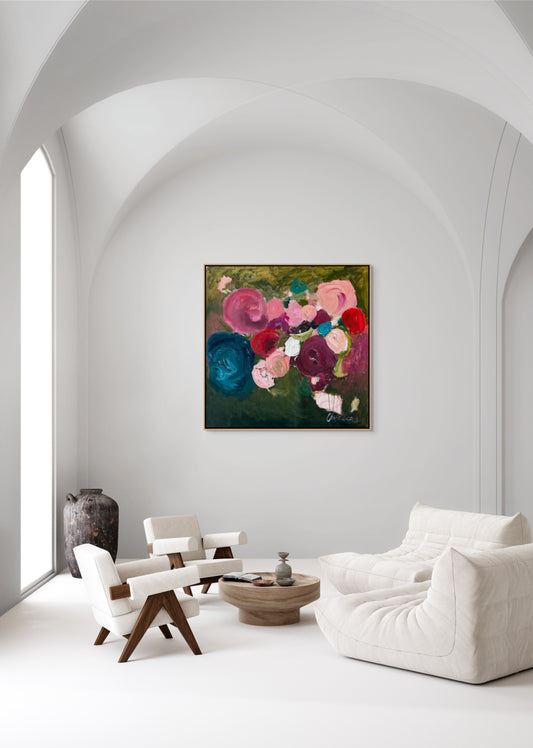 Vanessa is an abstract expressionist based on the Mornington Peninsula, Victoria, where she lives near the beach with her spoodle Milly. Vanessa’s medium of choice is acrylic paints, but she also leans towards mixed media with the use of impasto, spray and oil stick. She is a self taught artist, who has always had a creative drive, thanking her parents for immersion in many artistic experiences since childhood. Vanessa’s ‘Joie de Vivre’ is evident in all her artworks, as she strives to share beauty, while evoking a passionate response. Her message is one of strength, resilience, joy and boldly embracing life.
