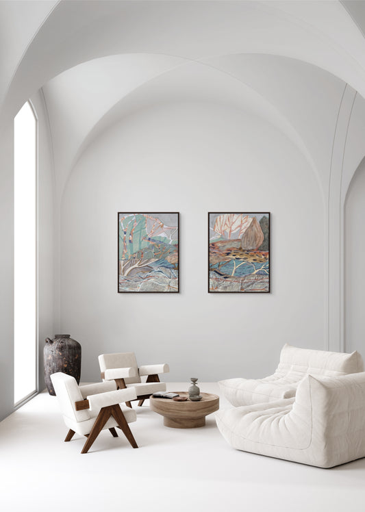 Zoe is a contemporary abstract artist whose work reimagines the landscapes of her surroundings through colour, textures, and dynamic forms. She has always had a deep connection to nature, drawing inspiration from the interplay of light, earth, and forms above and below the surface. Continually engaging with the natural world, Zoe wants us to understand her visual language but also invites the viewer to develop their own interpretation.