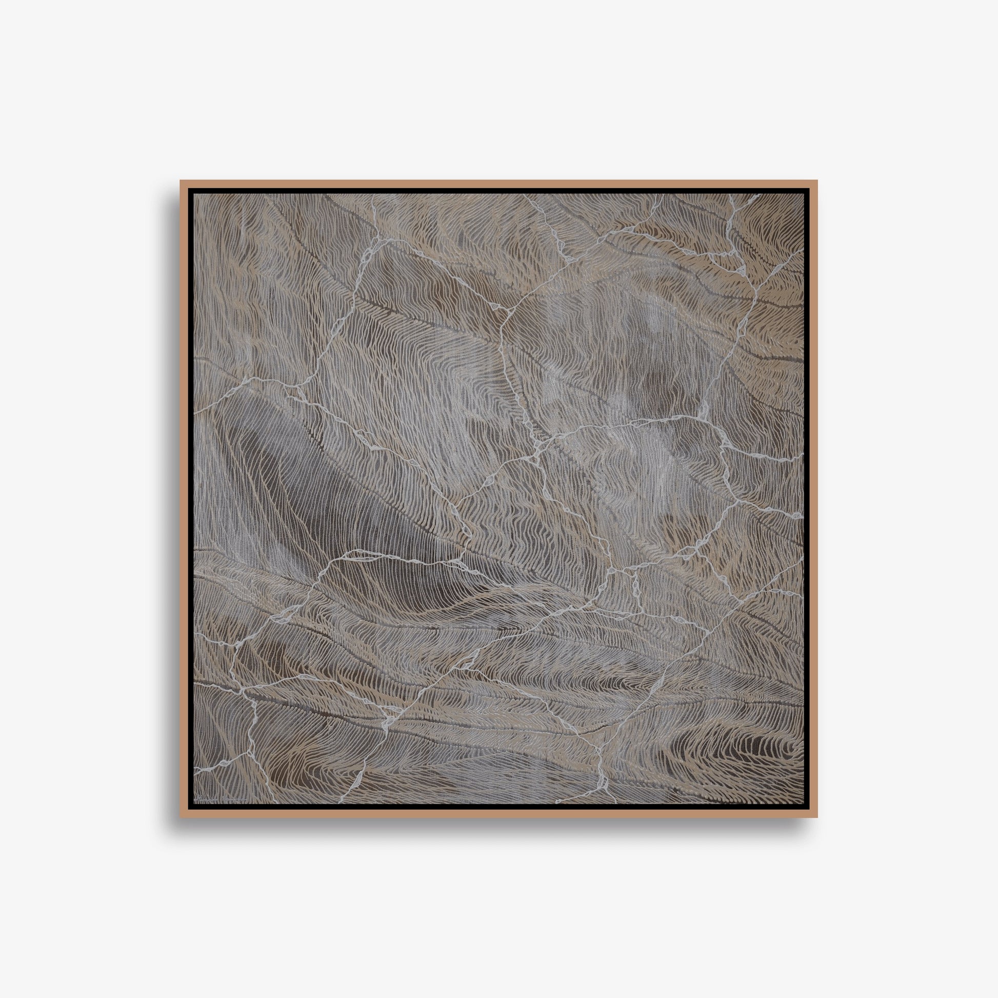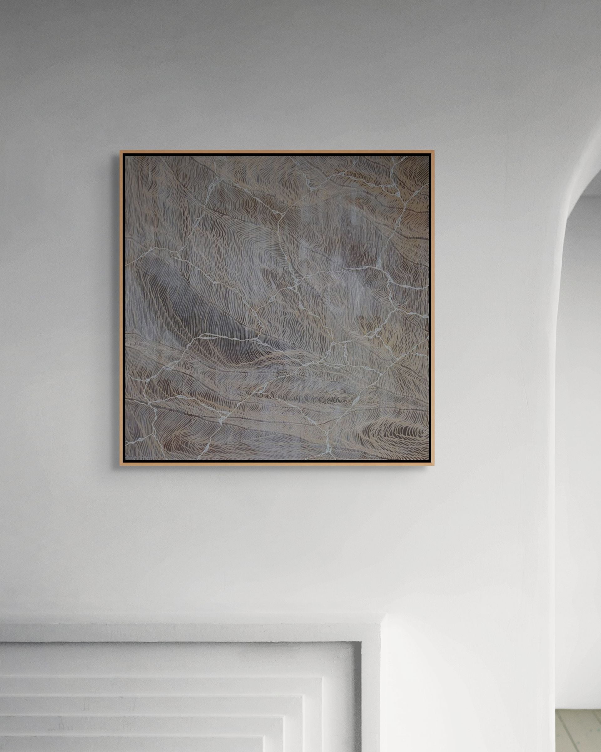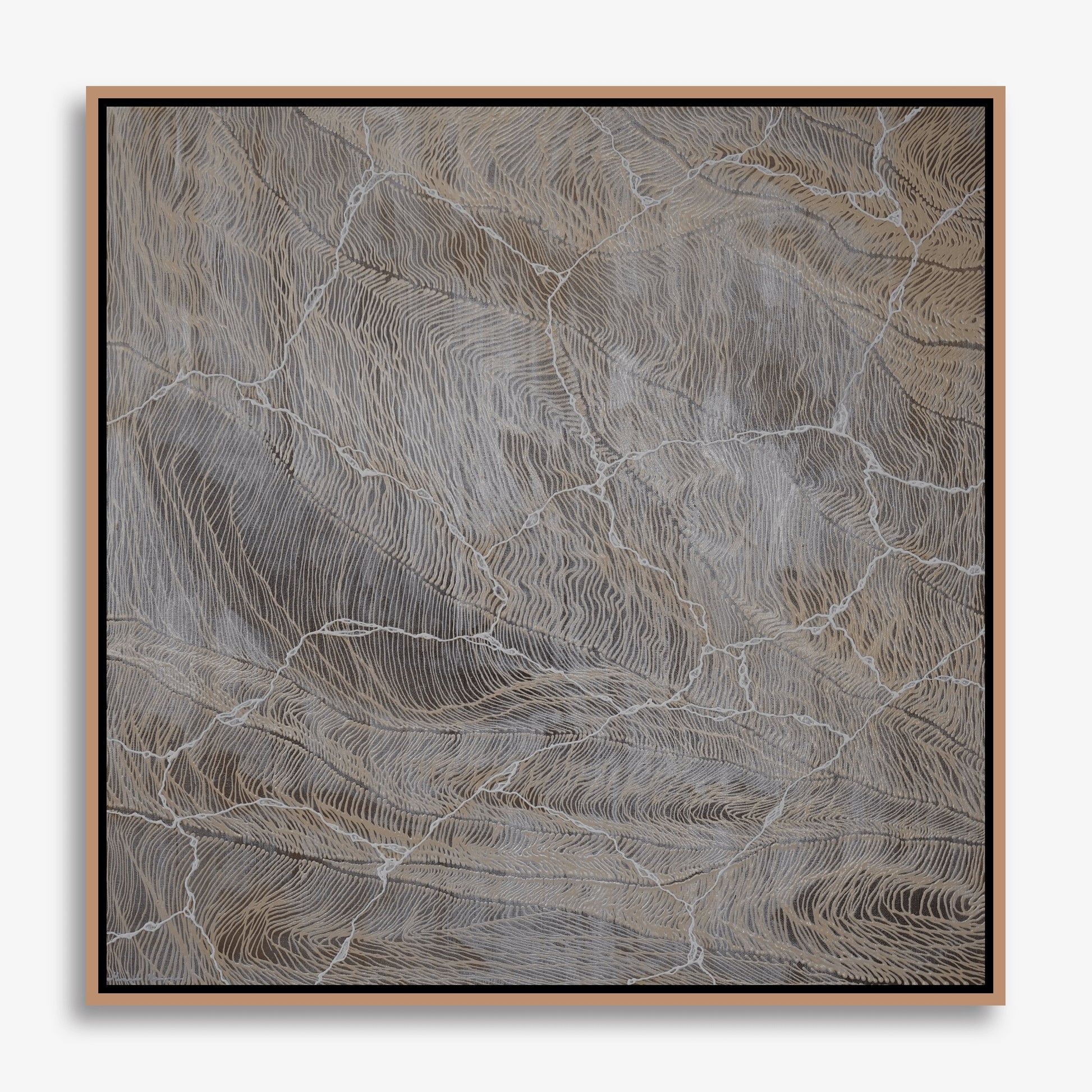Miranda Hampson, an Aboriginal artist of Anaiwan descent, creates works that honour First Nations connections to Country. Grounded in kinship, land, and culture, her layered, rhythmic mark-making embodies healing, heritage, and the enduring relationship between people and place.