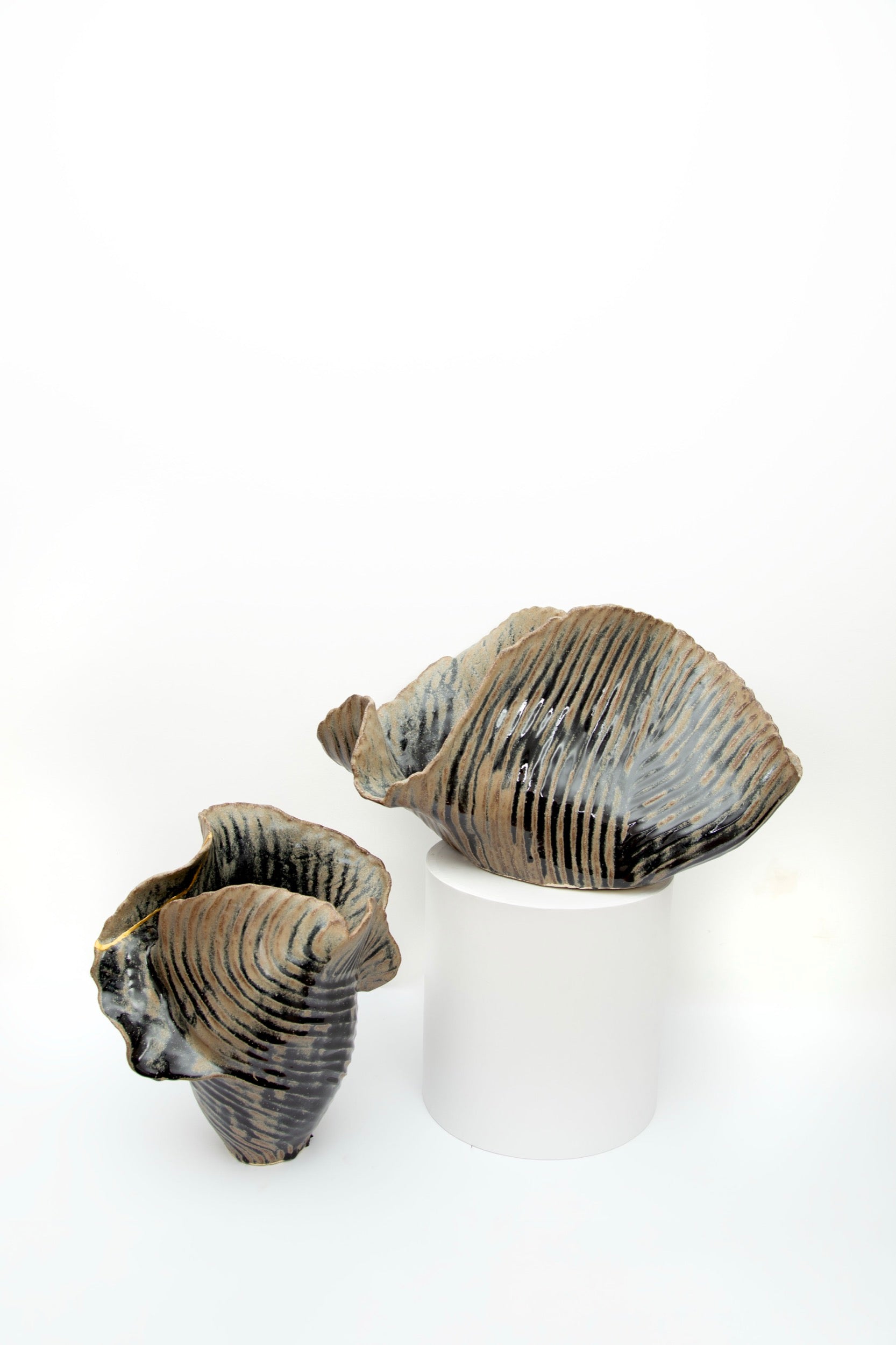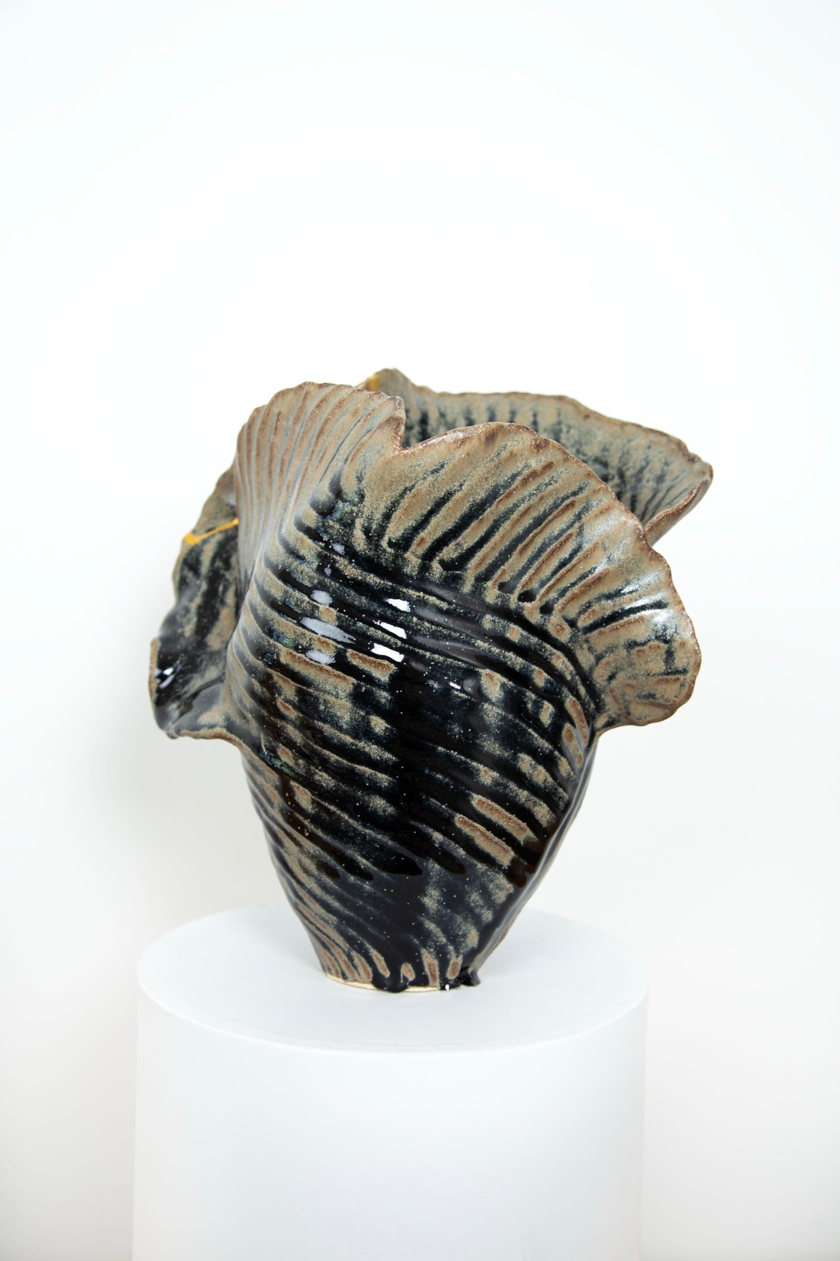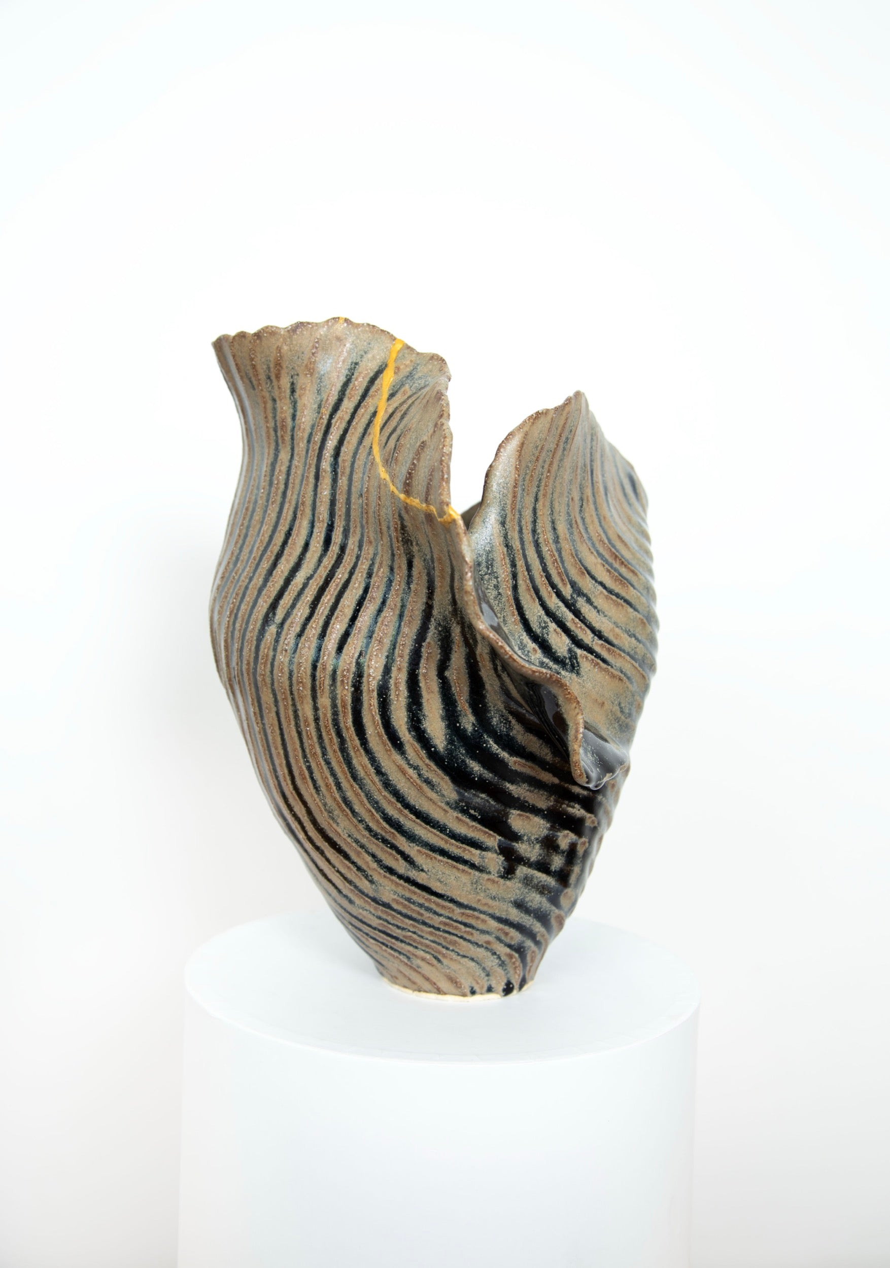 My SHIBUI collection is an exploration into the notion of beauty. Each vessel is beautiful from all angles with the surface linework directing the eye, whilst the glaze runs and falls between the channels. See beauty in the broken, with gold seams highlighting beautiful imperfections. These vessels can be displayed in various ways and that is inherently their beauty.