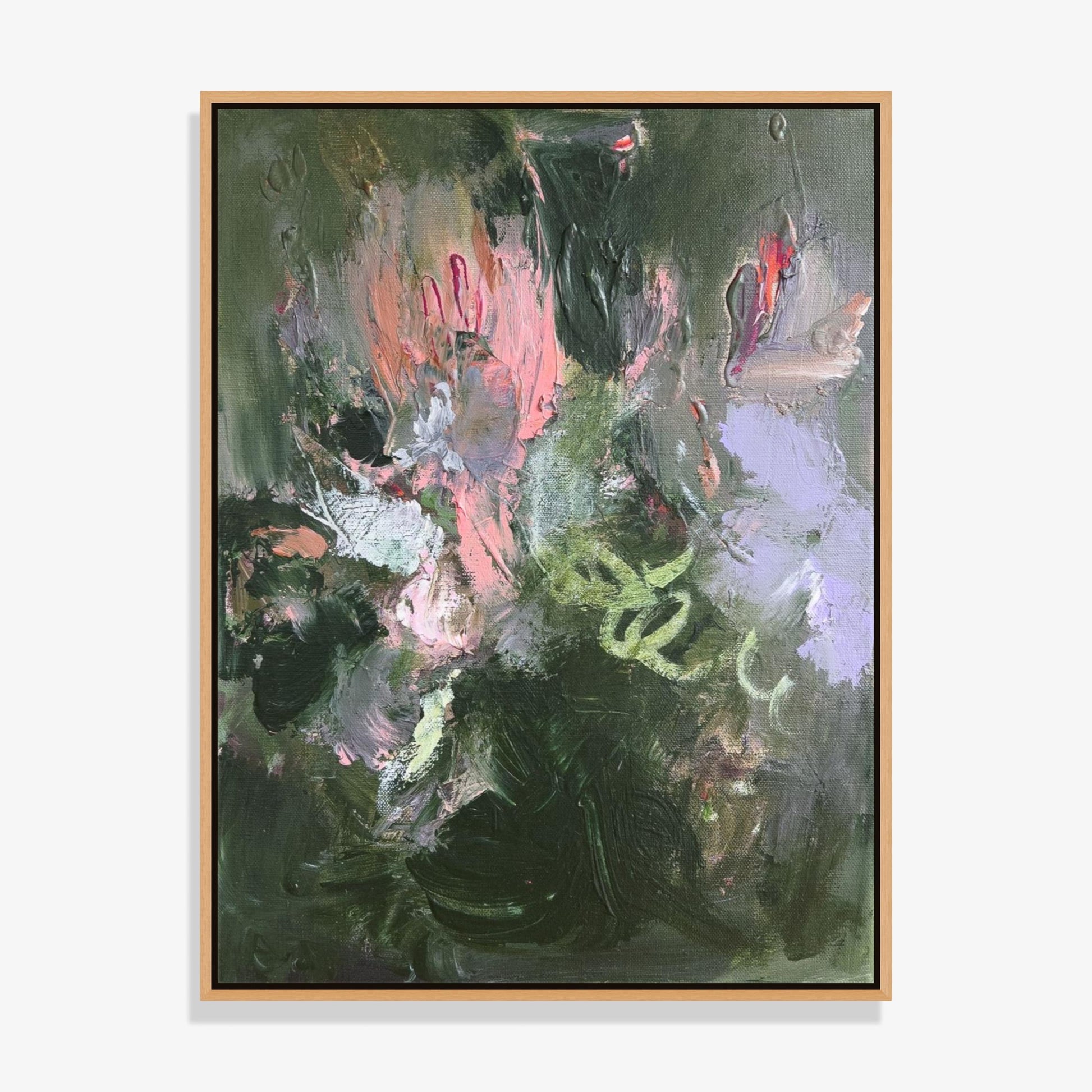 The artwork is Framed in Oak. Sometimes we do show the artwork in frame and out of frame to give an idea of how it would look. Expand the "Artwork Details" above, to learn more about the artwork.