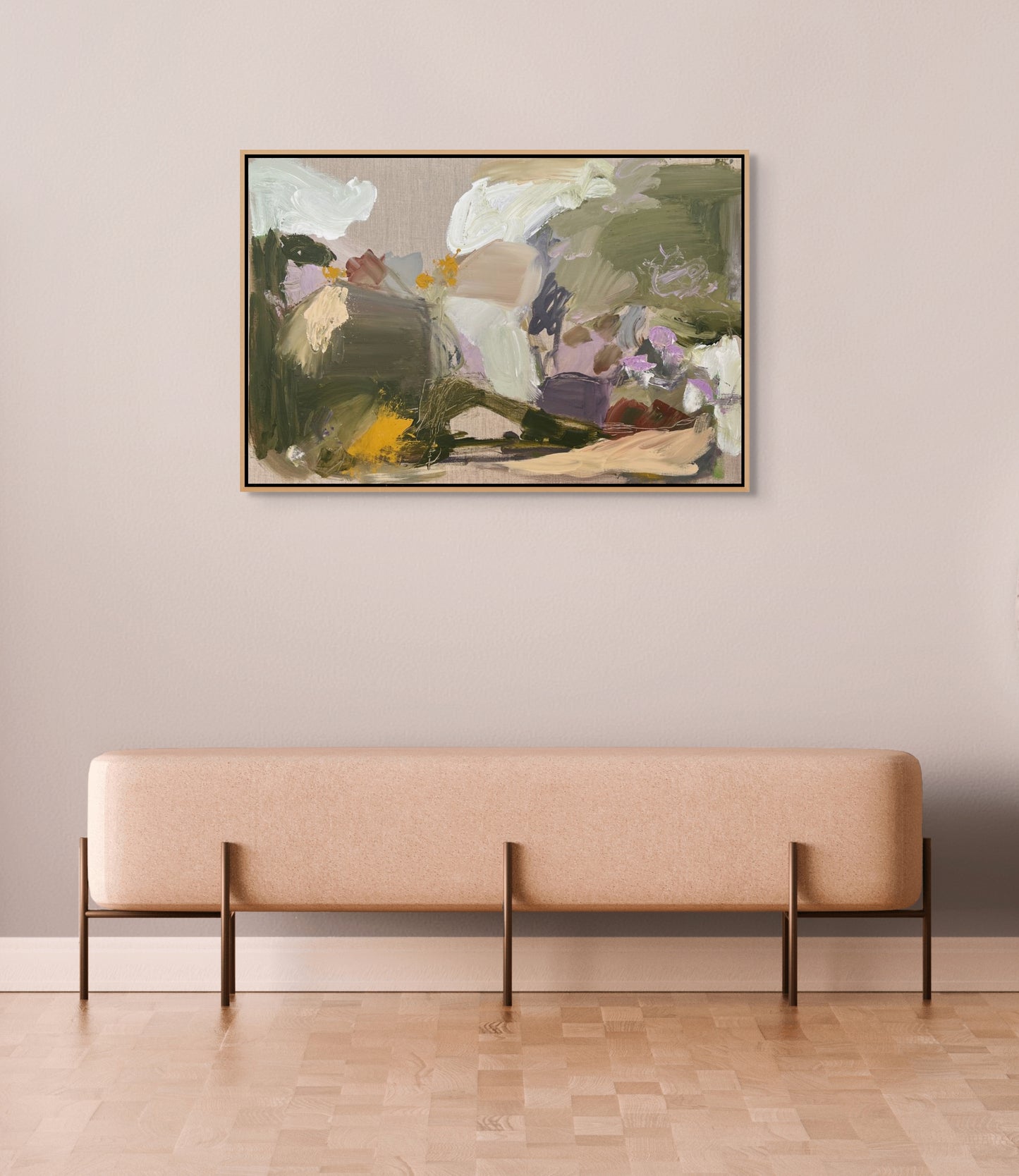 The artwork is Framed in Oak. Sometimes we do show the artwork in frame and out of frame to give an idea of how it would look. Expand the "Artwork Details" above, to learn more about the artwork.