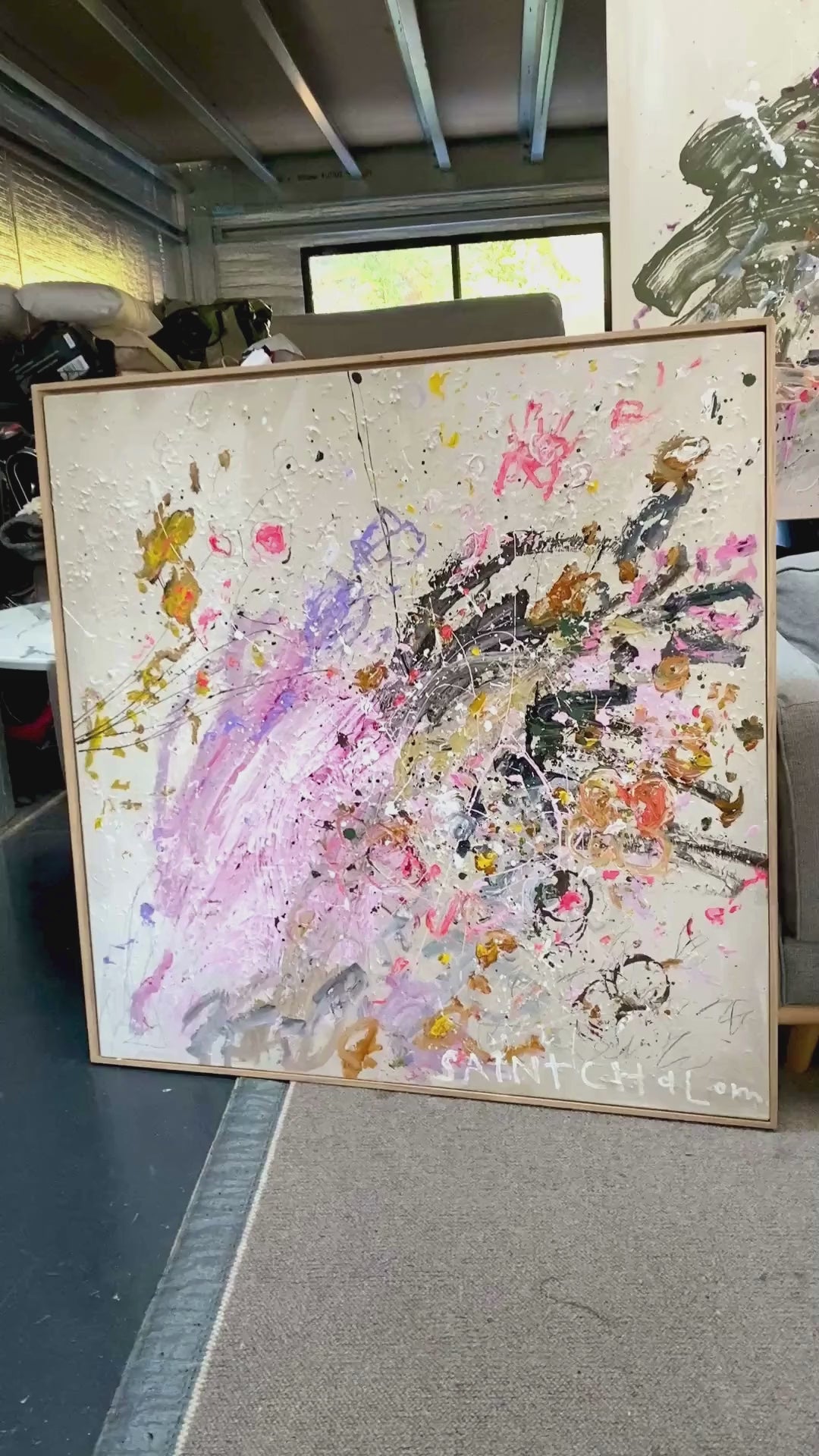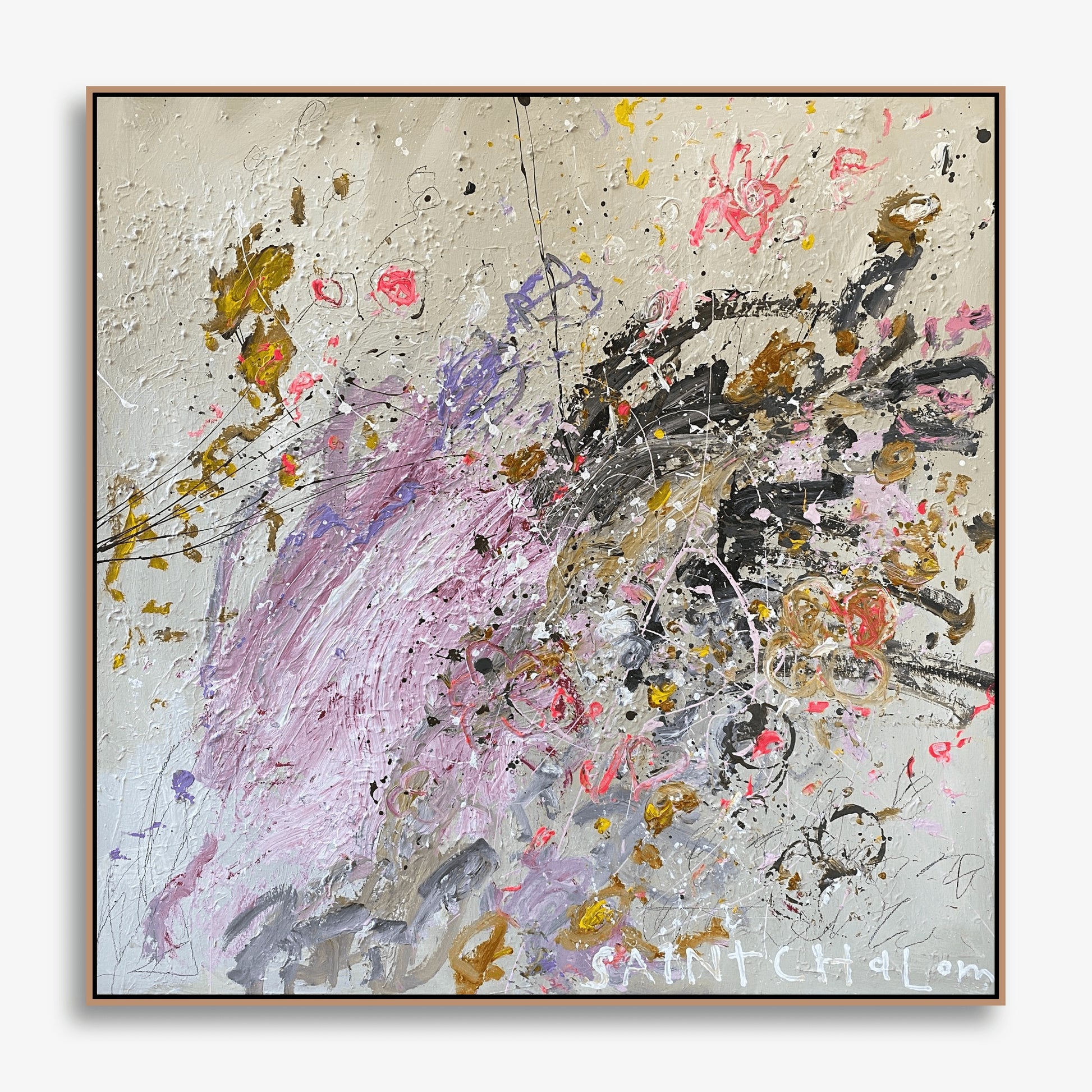 Saint Chalom, Australian artist exploring authentic spirituality through mixed-media paintings. Layers hidden blessings and prophecies with found materials, oil sticks, and gestural marks to create transformative atmospheric experiences that honour the divine nature within all.