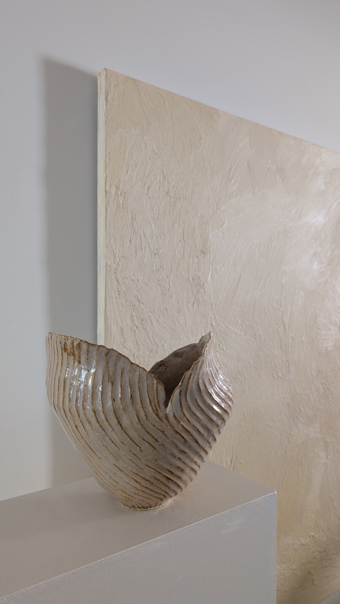 Shibui is a Japanese aesthetic defining simple, subtle, and unobtrusive beauty. It values quiet elegance, naturalness, and depth over flashiness. Objects or experiences described as shibui reveal their richness gradually, balancing simplicity with complexity and imperfection, often reflecting harmony, restraint, and the beauty of age or understatement. I have drawn on these concepts in this new collection using various media and in different forms. As well also inspiration from the beautiful glazes and organic vessels crafted by Artisan Ceramist Tee Mc Manus, to be exhibited alongside my paintings for our Exhibition, SHIBUI.