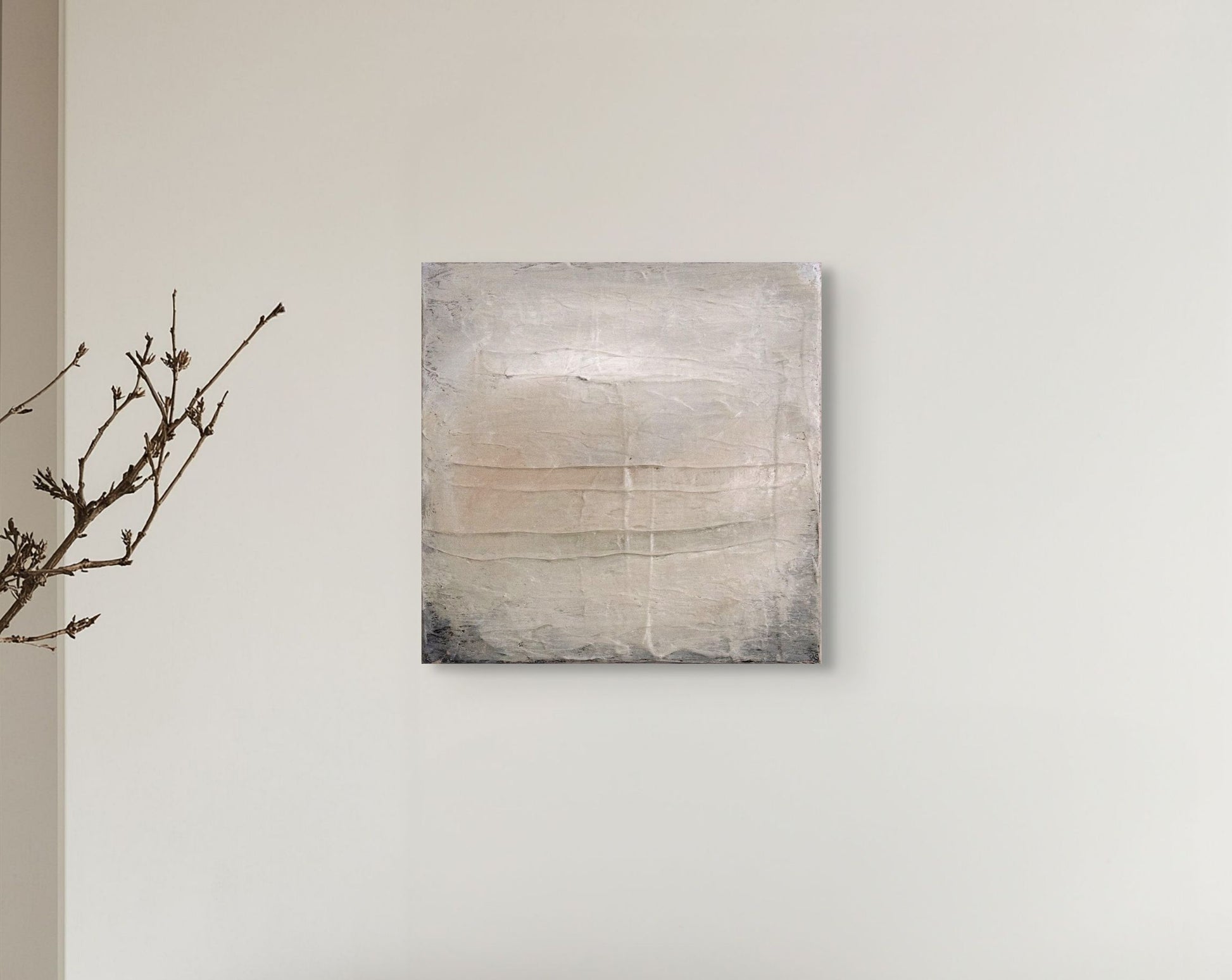 Natural painterly imperfections in each artwork are embraced in alignment with Shibui concepts and my personal painting philosophy of embedding an organic human touch. This new collection is unframed, the sides, at times, showing some of the painting process when displayed, to provide an alternative hanging option for interiors. If you prefer framing I recommend either natural oak or stained dark brown float frame for a beautiful finish.