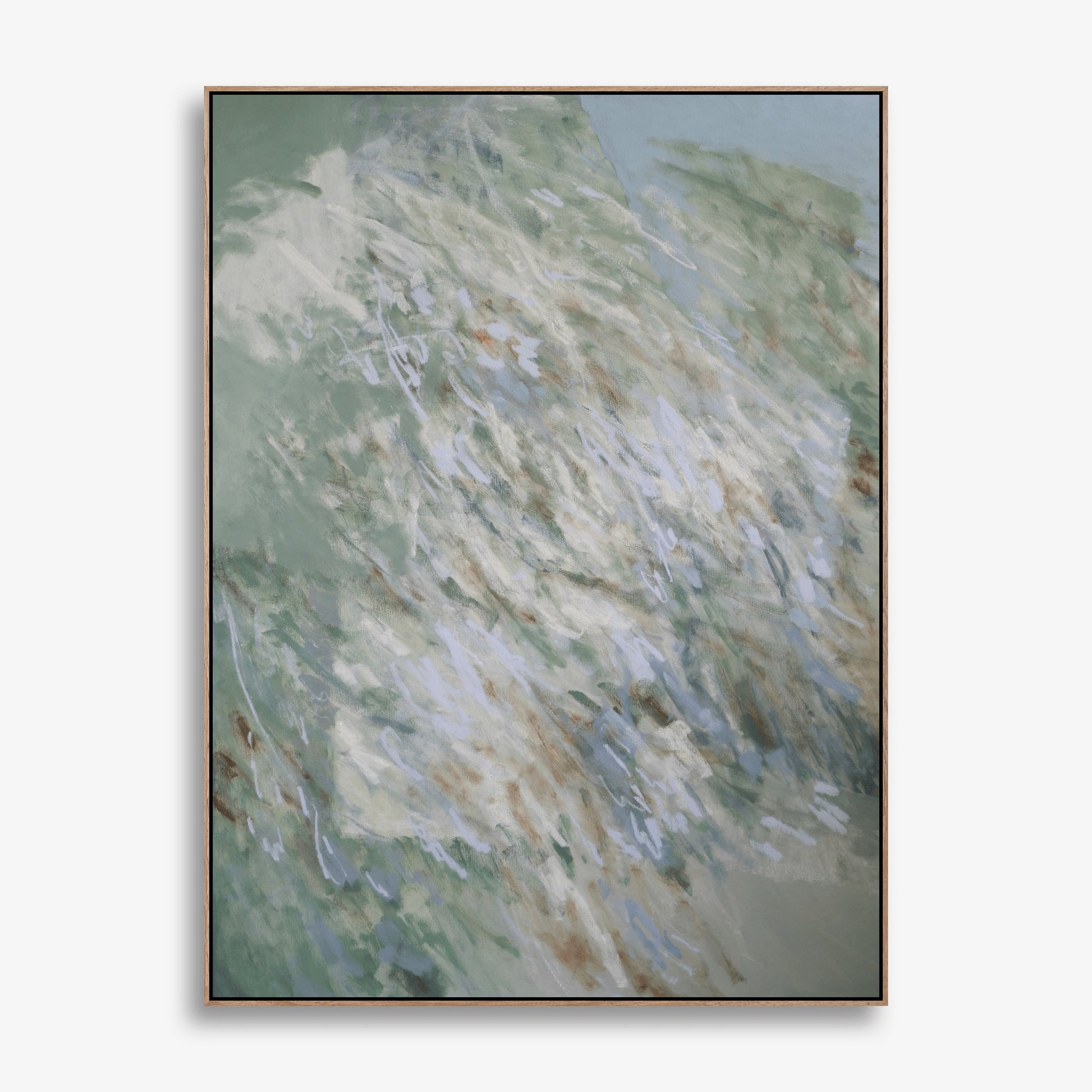The artwork is Framed in Oak. Sometimes we do show the artwork in frame and out of frame to give an idea of how it would look. Expand the "Artwork Details" above, to learn more about the artwork.