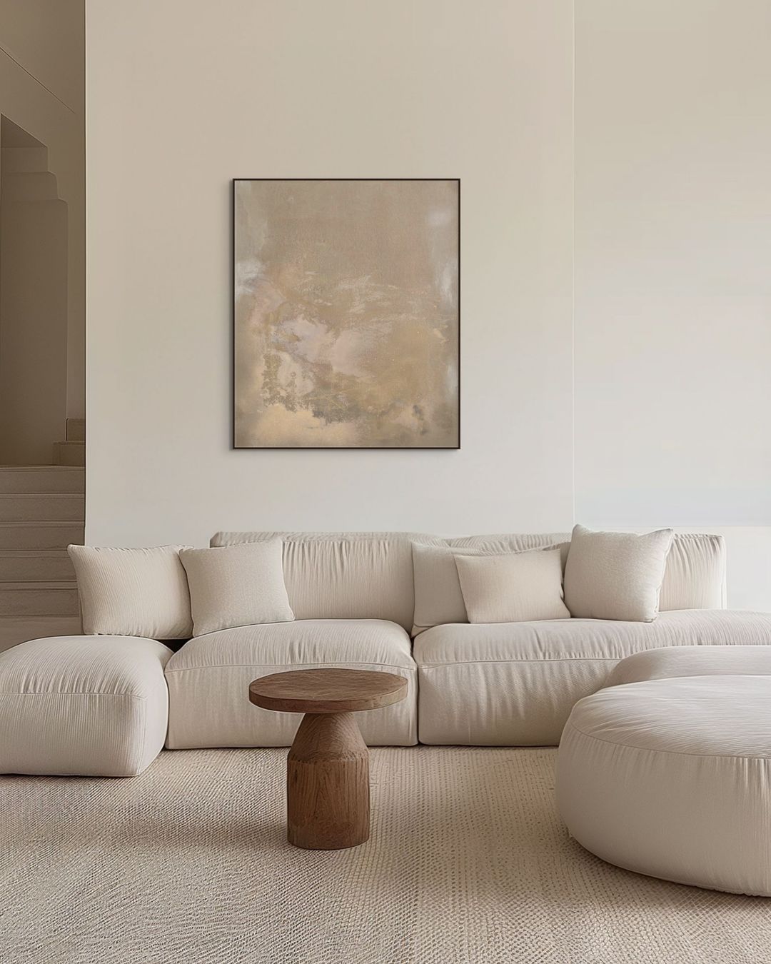 Natural painterly imperfections in each artwork are embraced in alignment with Shibui concepts and my personal painting philosophy of embedding an organic human touch. This new collection is unframed, the sides, at times, showing some of the painting process when displayed, to provide an alternative hanging option for interiors. If you prefer framing I recommend either natural oak or stained dark brown float frame for a beautiful finish.