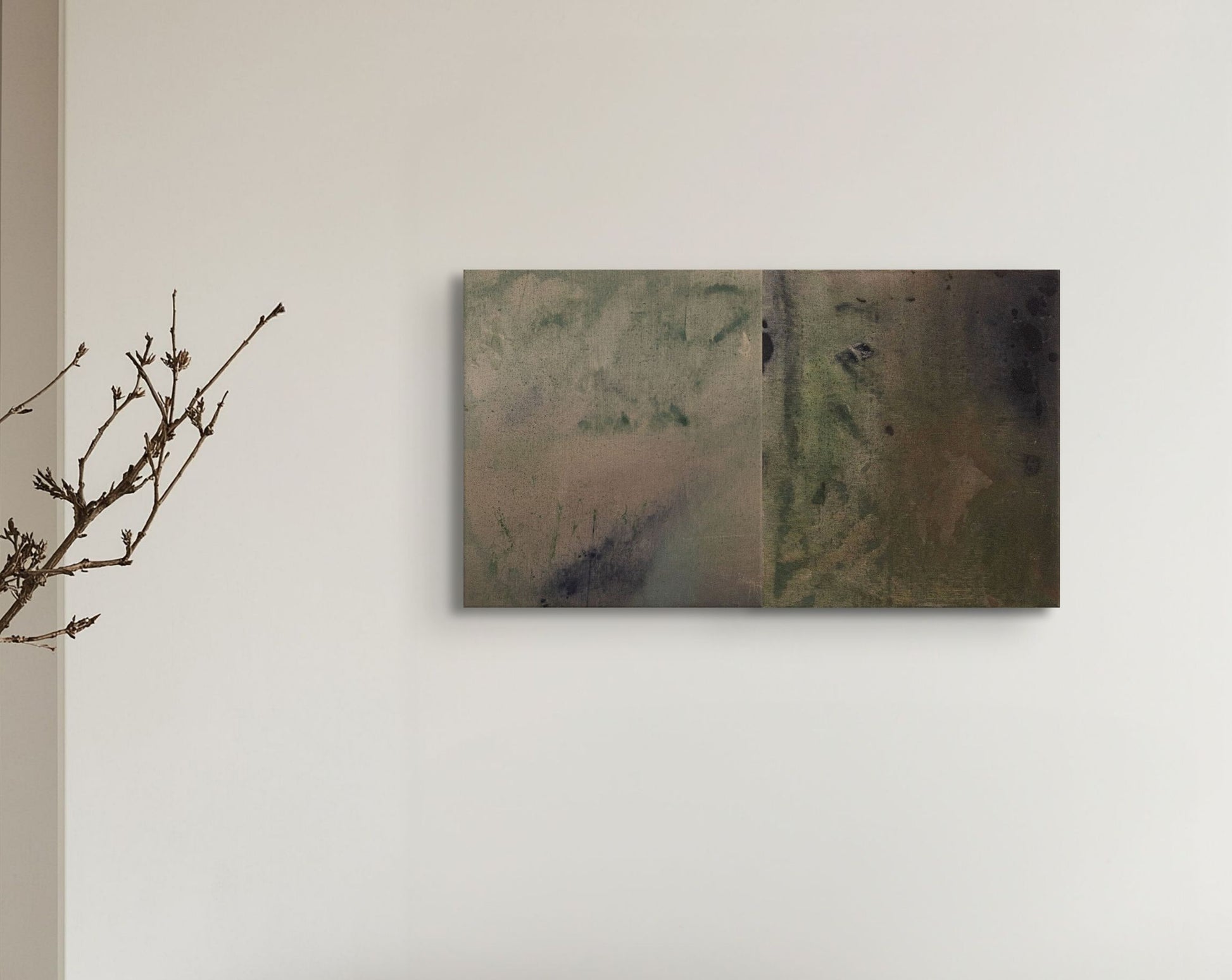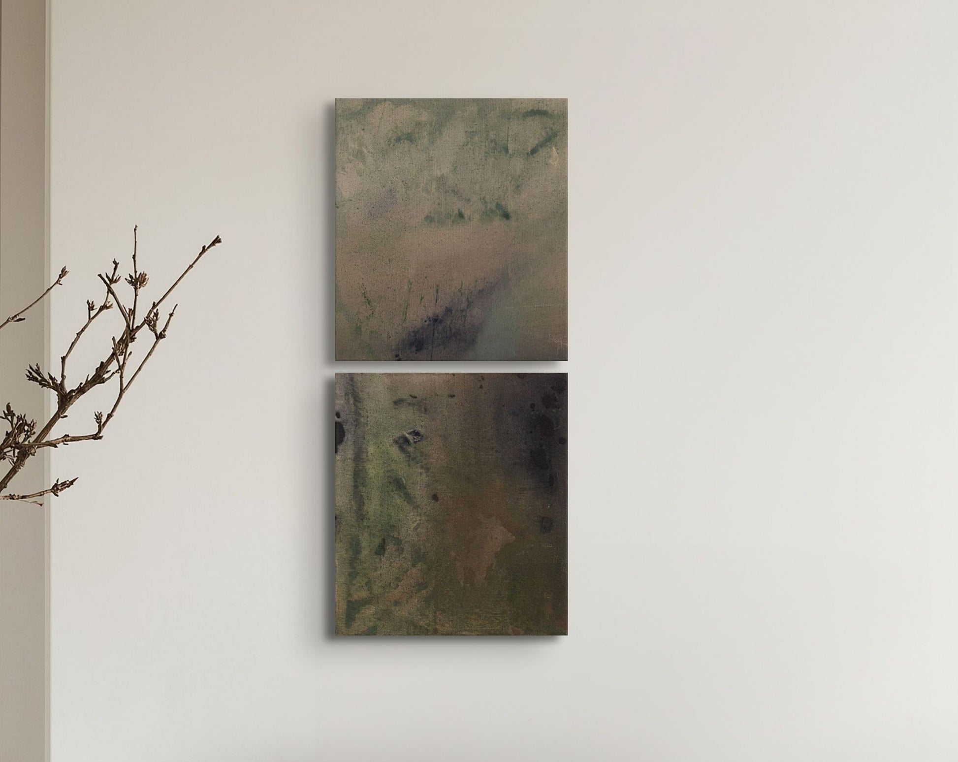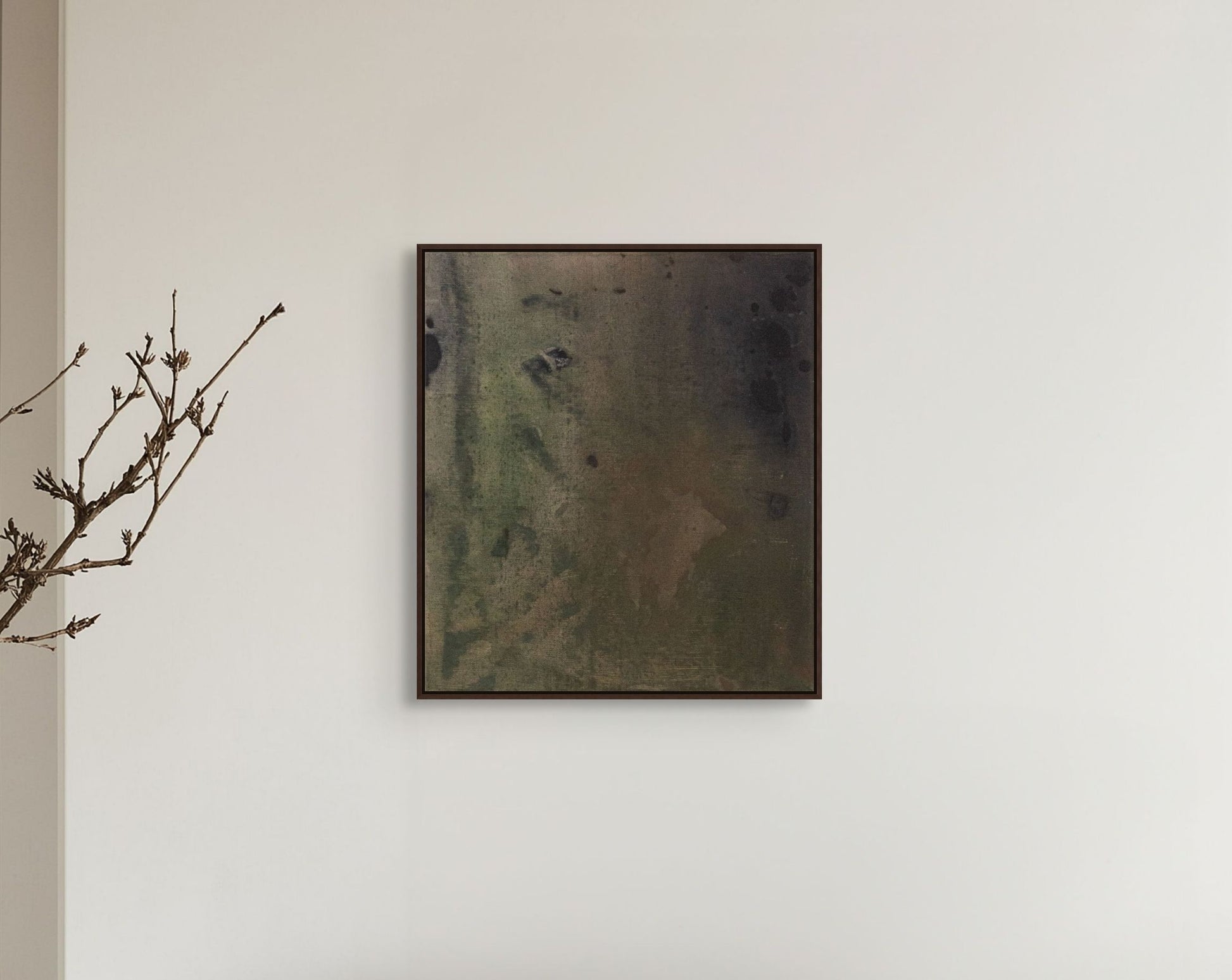 Natural painterly imperfections in each artwork are embraced in alignment with Shibui concepts and my personal painting philosophy of embedding an organic human touch. This new collection is unframed, the sides, at times, showing some of the painting process when displayed, to provide an alternative hanging option for interiors. If you prefer framing I recommend either natural oak or stained dark brown float frame for a beautiful finish.