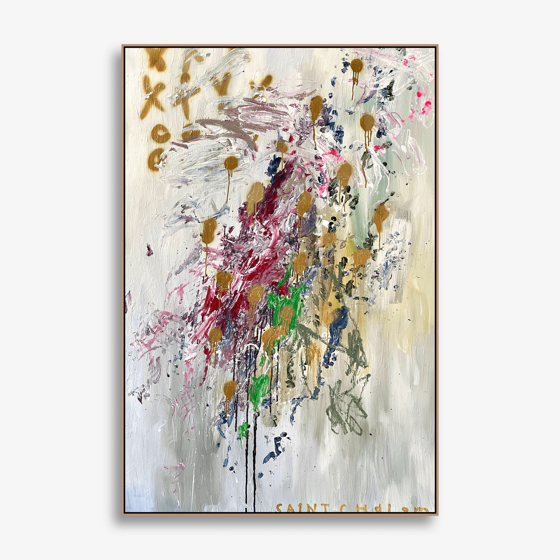 Yes. This is an original one-off artwork, Acrylic, Oil, Grease Pencil and Spray Paint on Canvas. We do use digital technology to frame the artworks and/or position them in-situ (home environments) for the purpose of helping you visualise the look and feel of the work.