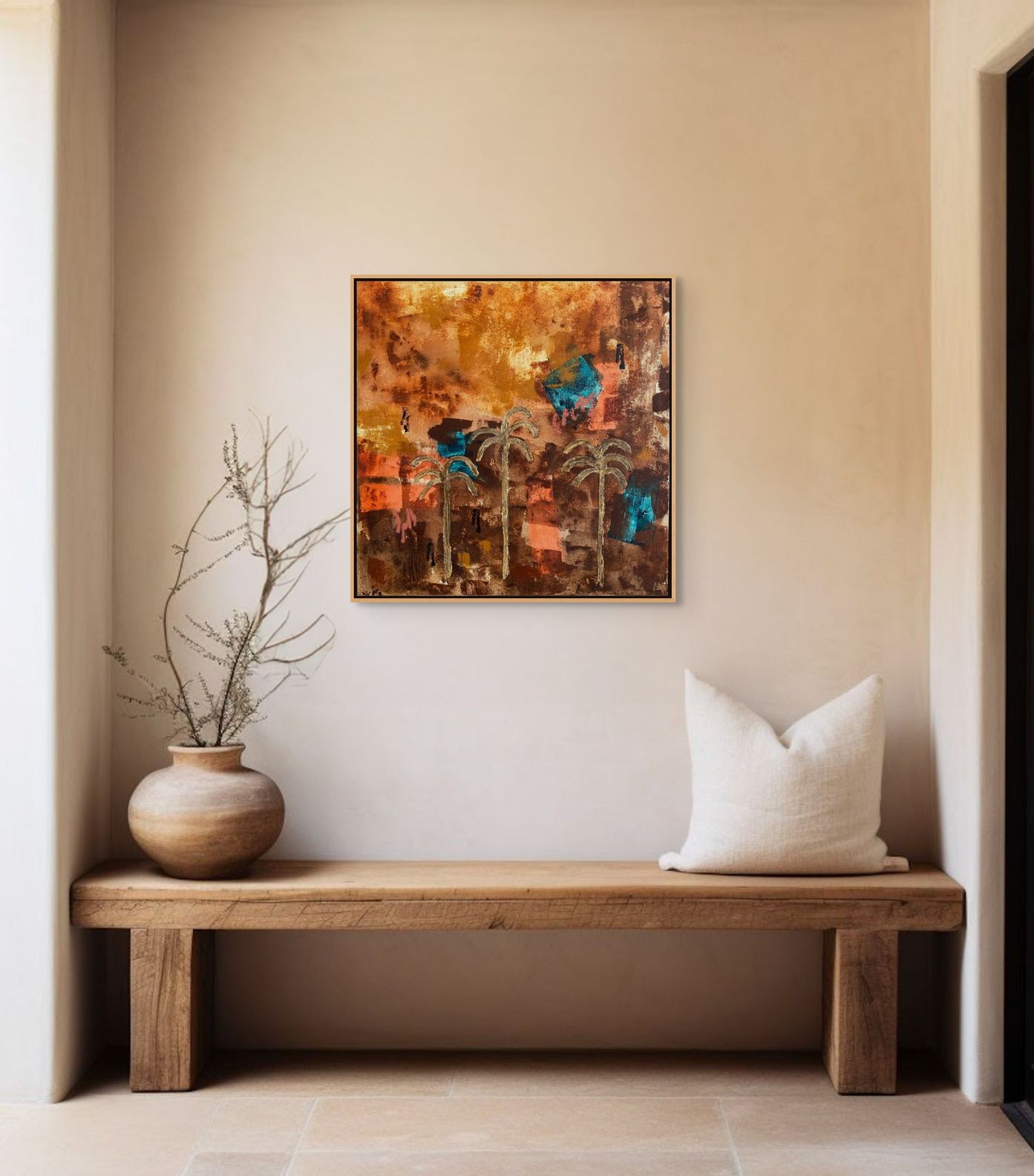 Yes. This is an original one-off artwork, Acrylic, Sand, Ink and Oil Pastel on Canvas. We do use digital technology to frame the artworks and/or position them in-situ (home environments) for the purpose of helping you visualise the look and feel of the work.