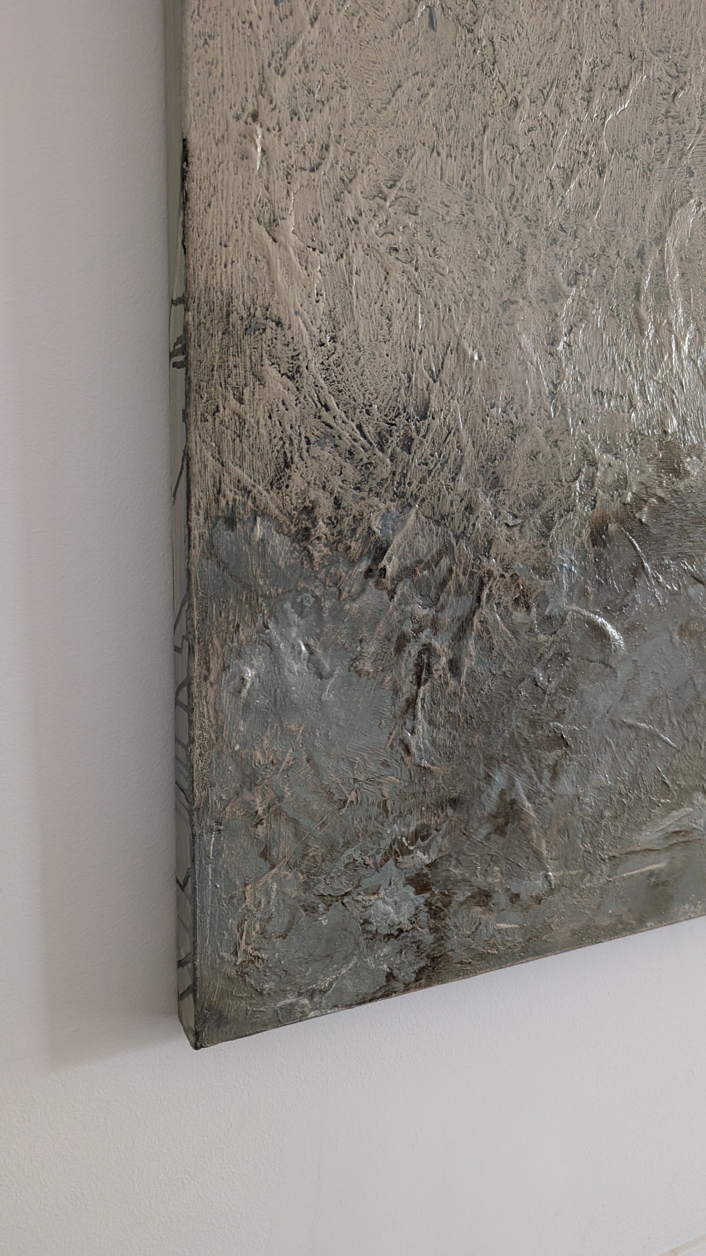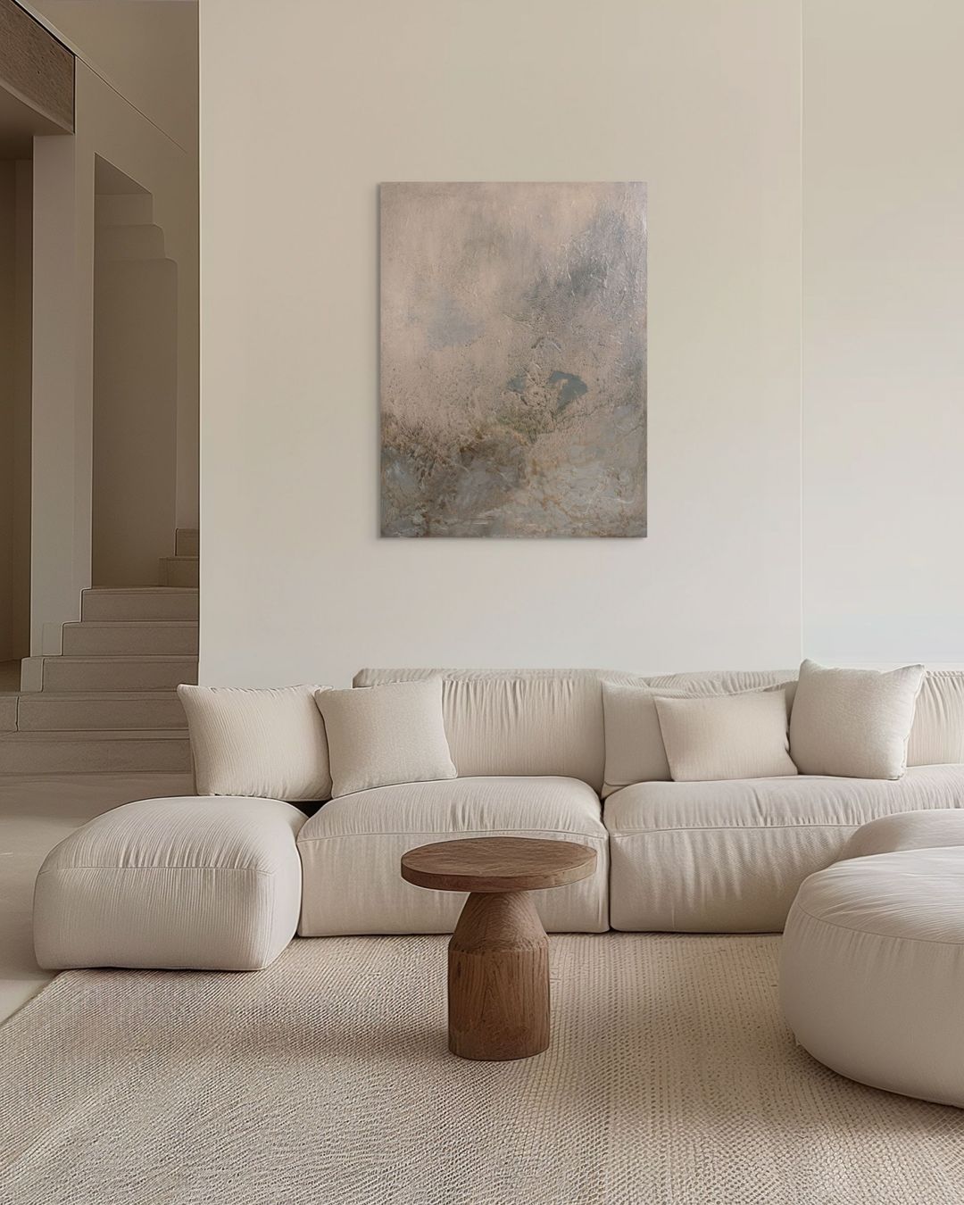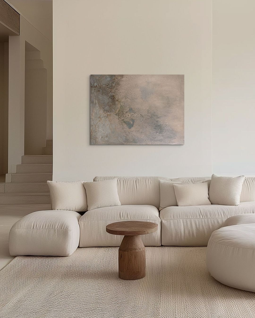 Natural painterly imperfections in each artwork are embraced in alignment with Shibui concepts and my personal painting philosophy of embedding an organic human touch. This new collection is unframed, the sides, at times, showing some of the painting process when displayed, to provide an alternative hanging option for interiors. If you prefer framing I recommend either natural oak or stained dark brown float frame for a beautiful finish.