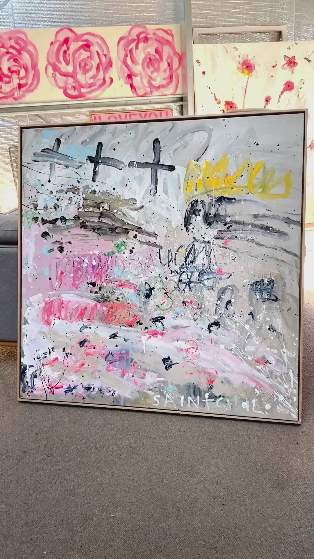 Saint Chalom, Australian artist exploring authentic spirituality through mixed-media paintings. Layers hidden blessings and prophecies with found materials, oil sticks, and gestural marks to create transformative atmospheric experiences that honour the divine nature within all.