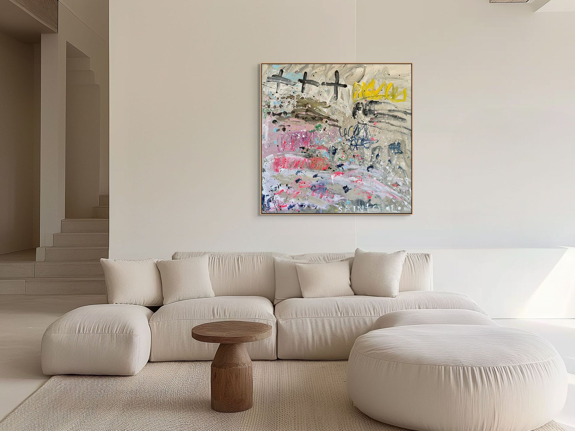 Yes. This is an original one-off artwork, Acrylic, Oil and Grease Pencil on Canvas. We do use digital technology to frame the artworks and/or position them in-situ (home environments) for the purpose of helping you visualise the look and feel of the work.