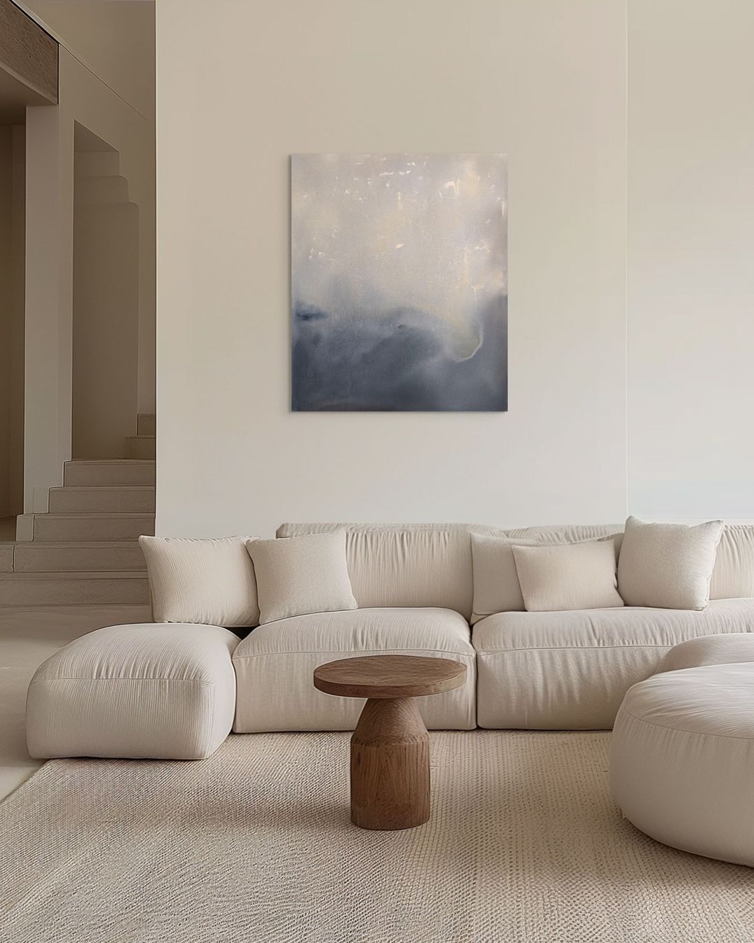 Natural painterly imperfections in each artwork are embraced in alignment with Shibui concepts and my personal painting philosophy of embedding an organic human touch. This new collection is unframed, the sides, at times, showing some of the painting process when displayed, to provide an alternative hanging option for interiors. If you prefer framing I recommend either natural oak or stained dark brown float frame for a beautiful finish.