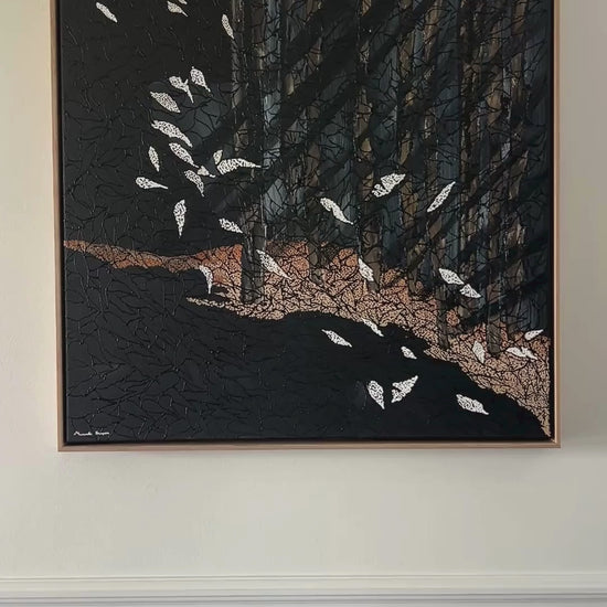The ‘Resonance’ Collection This collection of emotive landscapes explore the tension and connections between people, land, ocean, and spirit. Through darker tonal palettes, rippling textures, and layered abstraction, these works express a dialogue between movement and stillness. Each piece reflects a contemporary First Nations expression of place, drawing upon ancestral memory and the living energy of Country. There is both intimacy and vastness in these landscapes and a sense of presence that reaches beyond the physical. These pieces invite viewers to contemplate their own relationship to the land and the unseen forces that shape it.